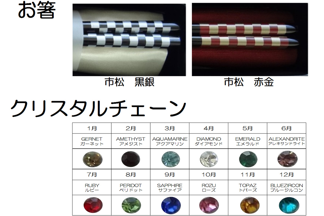 ※お箸は、男性が市松黒銀、女性が市松赤金のどちらかをお選びいただけます。