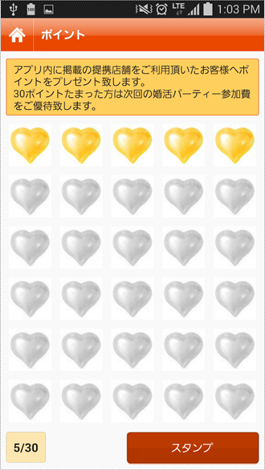 アプリの中のクーポンを利用するとスタンプが溜まります。溜まったら更にお得な情報をご用意しております。